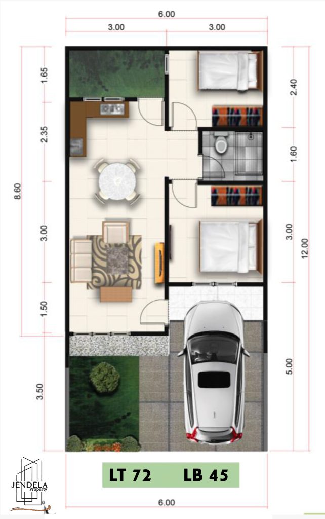 Tipe 45/72 menghadirkan 2 kamar tidur, 1 kamar mandi, area keluarga yang nyaman, serta halaman depan dan belakang yang dapat dikembangkan sesuai kebutuhan—mulai dari taman kecil hingga area servis. Terletak di lingkungan yang asri dan tenang, Alam Hijau Residence menawarkan kualitas hidup yang lebih baik dengan udara segar dan nuansa hijau yang menenangkan.